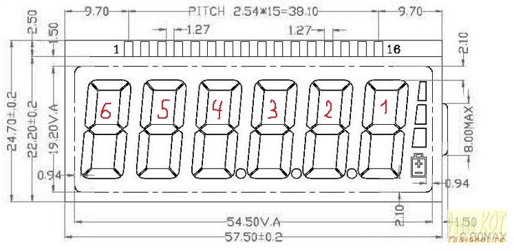 Прошу также обратить внимание, десятичная точка привязана к сегменту стоящему справа от неё. Сегменты 4, 5 и 6 не имеют десятичных точек. Биты относящиеся к точкам этих сегментов управляют указателем заряда батареи.