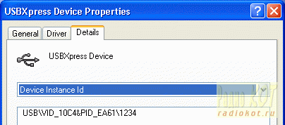 Открытие окна свойств устройства покажет, среди прочих, такие детали как идентификаторы производителя (VID) и устройства (PID):