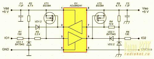 момент мне безвозмездно попала микросхема ADuM5241. Очень привлекательным её свойством есть то, что она