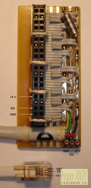 применён четырёхпроводный, от телефона. Один из проводов (между IO1 и Vdd) на обоих концах никуда не подключен,