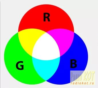 Печатка не разрабатывалась, т.к. все подключения выполнял на макетке. В ходе экспериментов с дисплеем пробовал тактировать Мегу и от внешнего кварца на 16 МГц – проблем не наблюдалось. Вообще повышение частоты тактового генератора контроллера имеет смысл, т.к. это напрямую влияет на скорость вывода информации на экран. При 8 МГц его полная заливка занимает около 2-х секунд. После выполнения всех подключений и подачи питания дисплей нуждается в инициализации. Минимальный “джентльменский” набор для этого состоит из трёх команд: SWRESET (0x01), SLPOUT (0x11) и DISPON (0x29). Первая команда выполняет программный reset, вторая выводит чип из режима sleep, третья включает вывод информации на экран. После первой и второй команд обязательна пауза в 120ms. Если всё сделано верно, то после DISPON на экране должно появиться «звёздное небо», что косвенно свидетельствует о верно выбранном направлении для приложения усилий )) Помимо описанного “джентльменского” набора в раздел инициализации я включаю ещё пару дополнительных команд индивидуальной настройки: COLMOD (0х3A) и MADCTL (0x36). Передав первую команду и соответствующий ей байт с параметрами, мы можем изменить, так называемую, глубину цветопередачи, что позволит повлиять как на качество выводимого изображения, так и на объём кода, необходимого для его создания. Дело в том, что после включения питания и начальной инициализации командами из “джентльменского” набора наш дисплей переходит в режим максимально качественной отрисовки, позволяя выводить более 262 000 цветовых оттенков! С одной стороны, это круто, с другой – требует огромных затрат памяти, т.к. на кодировку цвета одного пикселя (!) нам потребуется три байта! Помножьте 128 на 128 и ещё на 3, и получится, что для отрисовки одного единственного экрана (не путать с заливкой/очисткой, там всё проще) нам необходимо 49К SRAM! Применив команду COLMOD с параметром 0х05, мы уменьшаем глубину цветопередачи до 64 000 цветов, при этом на кодировку одного пикселя мы затратим уже не три байта, а два. В этом случае для отрисовки полного экрана нам потребуется уже 128*128*2=32К памяти – экономия, как говорится, налицо. Прежде, чем описать назначение команды MADCTL слегка затрону сам процесс формирования цвета: считается, что для создания любого цветового оттенка достаточно смешения максимум трёх основных цветов – Красного, Зелёного и Синего (Red, Green, Blue – RGB).