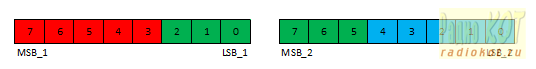 Старшие 5 бит 1-го байта отводятся на красный цвет, затем 3 младших бита этого же и ещё 3 старших бита второго байта на зелёный, и оставшиеся 5 младших битов второго байта – на синий. Однако при работе с разными дисплеями и разными программами, использующимися для оцифровки изображения, мы можем получить код с инвертированным для данного вида дисплея представлением данных, как показано на рисунке ниже: