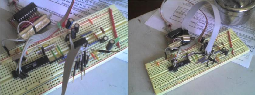 Естественно не забываем про кварц и конденсаторы на землю для стабильного запуска. А также 5 ногу компорта на землю (сигнальная земля). Для MAX используется типовая схема включения. Рекомендую между информационной линией и землей воткнуть светодиоды. Там конечно-же 10 В, однако, это импульсный режим и напряжение не постоянное. Воткнутый светодиод решит 2 проблемы, отобразит импульсы, в результате вы будете хоть как-то видеть что по проводам что-то идет, и согласует нагрузку (дополнительное сопротивление на землю). У нас это всё было собрано "на скорую руку", примерно вот так: