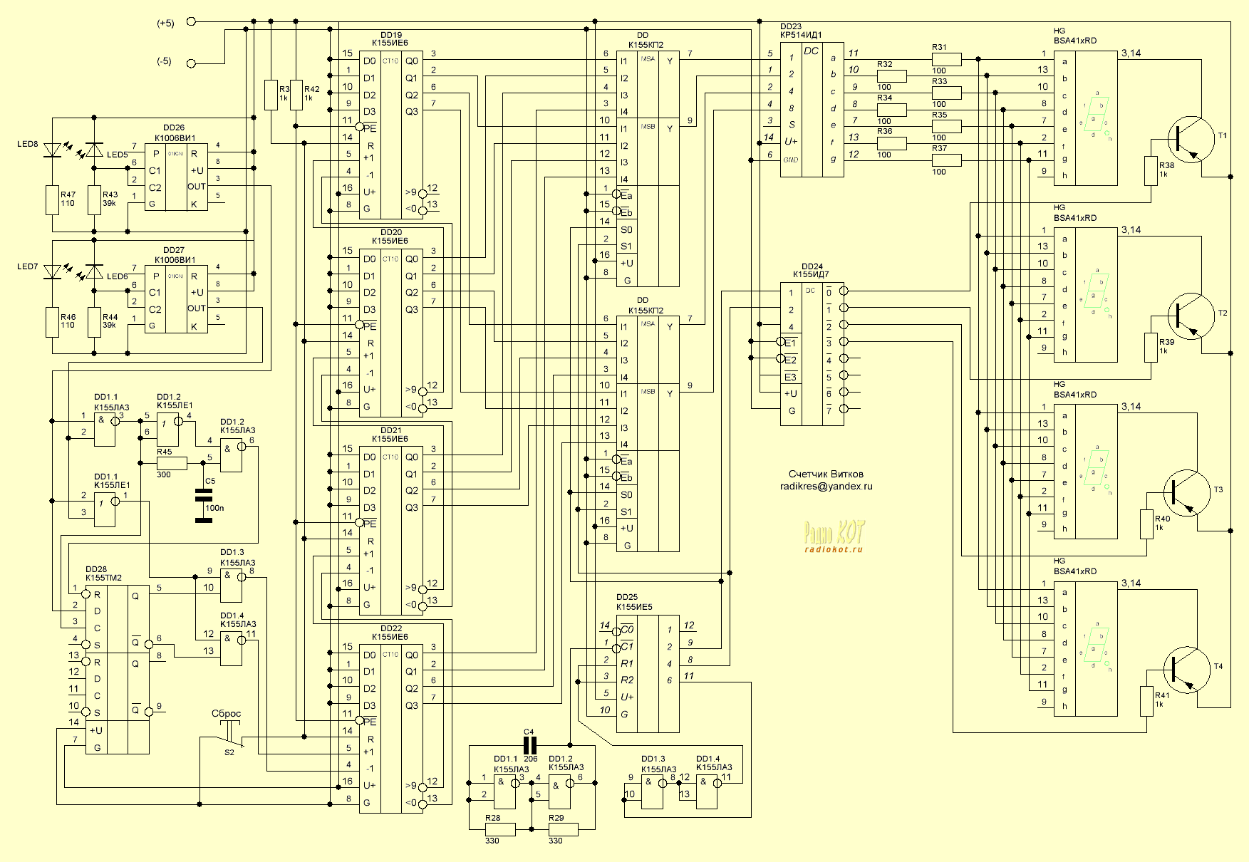 Нашел более или менее нормальную схему, но ПЗУ в этой схеме все портило, а точнее полное отсутствие наличия оной у меня в заначках, да и если была, все рано с ПЗУ-шкой возиться не хочется. Вот и переделал на свой лад, а основу датчиков, и счетчика я взял эту схему.