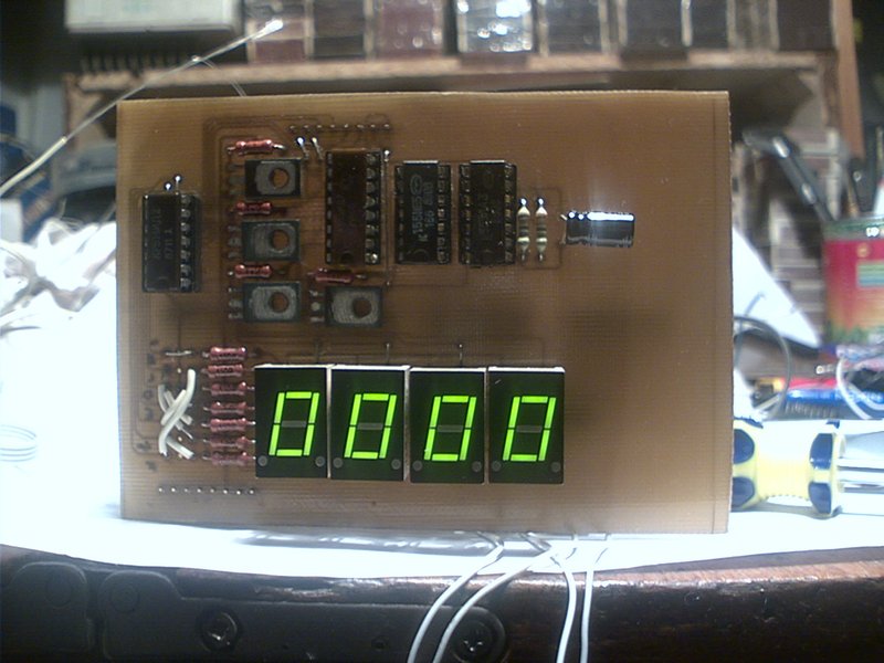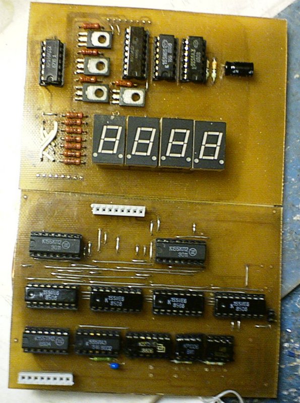 Датчик сделан как в статье, из оптопары, только я взял оптопару из роликовой мыши Genius. Единственное что переделал - это динамическую индикацию. КР514ИД1 было в наличие всего две, а К155КП2 - как грязи, вот и мысль вовремя сработала и появилось на свет это детище.