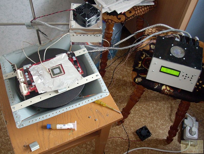На фото происходит пропайка видеочипа компьютерной видеокарты (частая их неисправность заключается в повреждении пайки из-за перегрева), фольга используется для ограничения площади воздействия верхнего нагревателя.