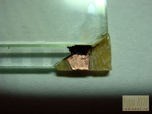Самое основное - подобрать освещение, так чтобы в отражении лампы были видны контакты дисплея. Поэтому все фотки будут в ужасном качестве из-за лампы дневного света. А скол мы заделаем кусочком текстолита приклеенного на эпоксидную смолу и после высыхания, обеспечим контакт с помощью широко распространенного токопроводящего клея "Контактол", применяемого для восстановления обогрева заднего стекла автомобилей. Использовать иглу спицу или часовую отвёртку для нанесения клея мы не будем. Клей будет намагничиваться, и мы только намучаемся. Пользоваться будем спичкой, кто помнит, что это такое, или остро заточенной щепкой. Клей разведённый спиртом быстро высыхает, поэтому нужно подсуетится. И ловить момент пока он жиденький.